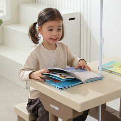 Универсальность набора мебели для детей заключается в компактных размерах столешницы, позволяющих комфортно расположить игрушки, посуду или материалы для творчества, и двух удобных лавочках, рассчитанных на размещение детей различных возрастных групп. Округлая форма углов минимизирует риск случайных травм и повреждений.