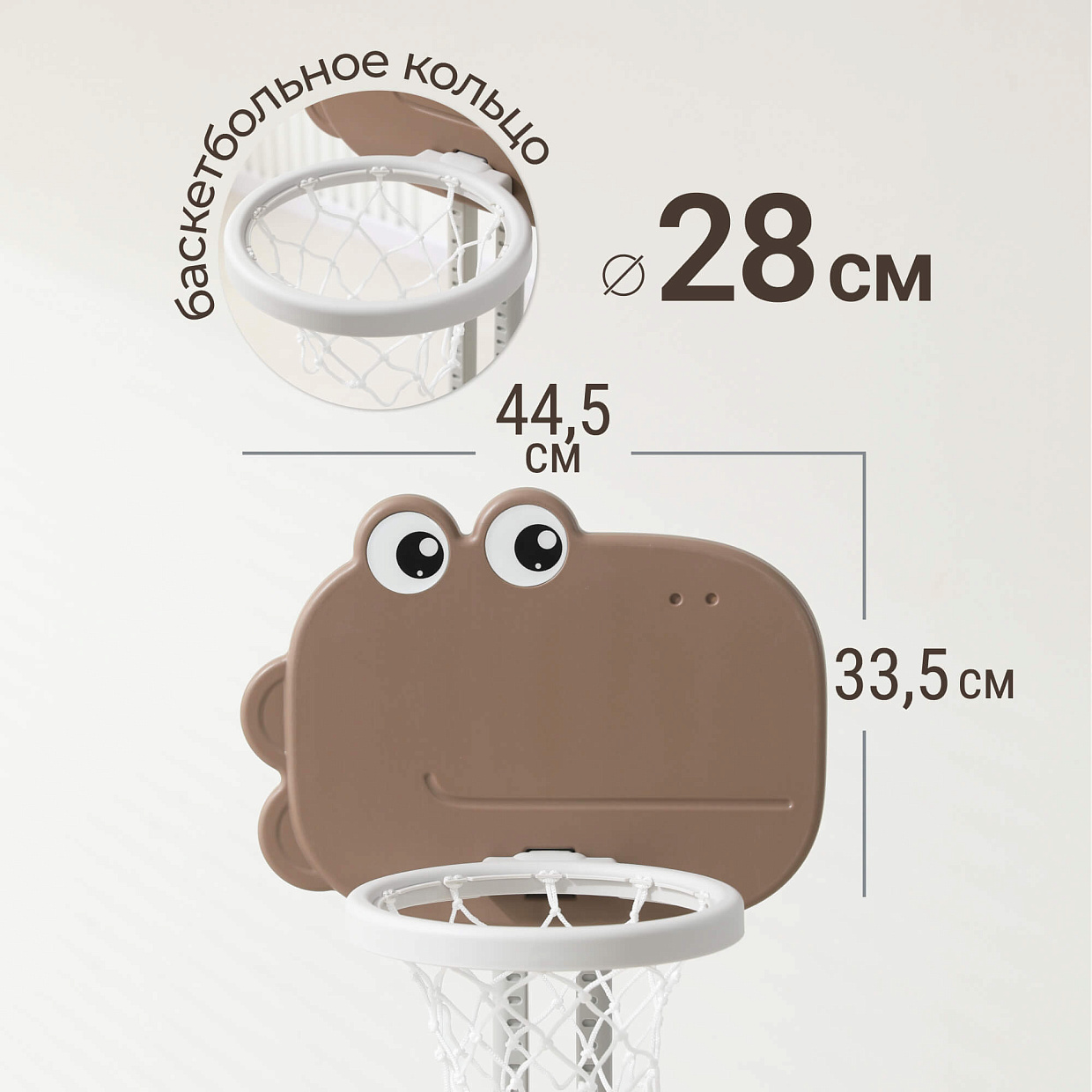 Для обеспечения устойчивости конструкции основание баскетбольной стойки имеет водоналивное отверстие. В нижней части стойки расположены футбольные и хоккейные ворота. В комплекте со стойкой идут футбольный и баскетбольный мячи, а также клюшка и маленький мяч-шайба. Стильный дизайн и спокойная цветовая гамма позволяют прекрасно вписаться в любой интерьер. Отлично сочетается с другими детскими товарами марки Unix Kids. Желаем вам новых побед!