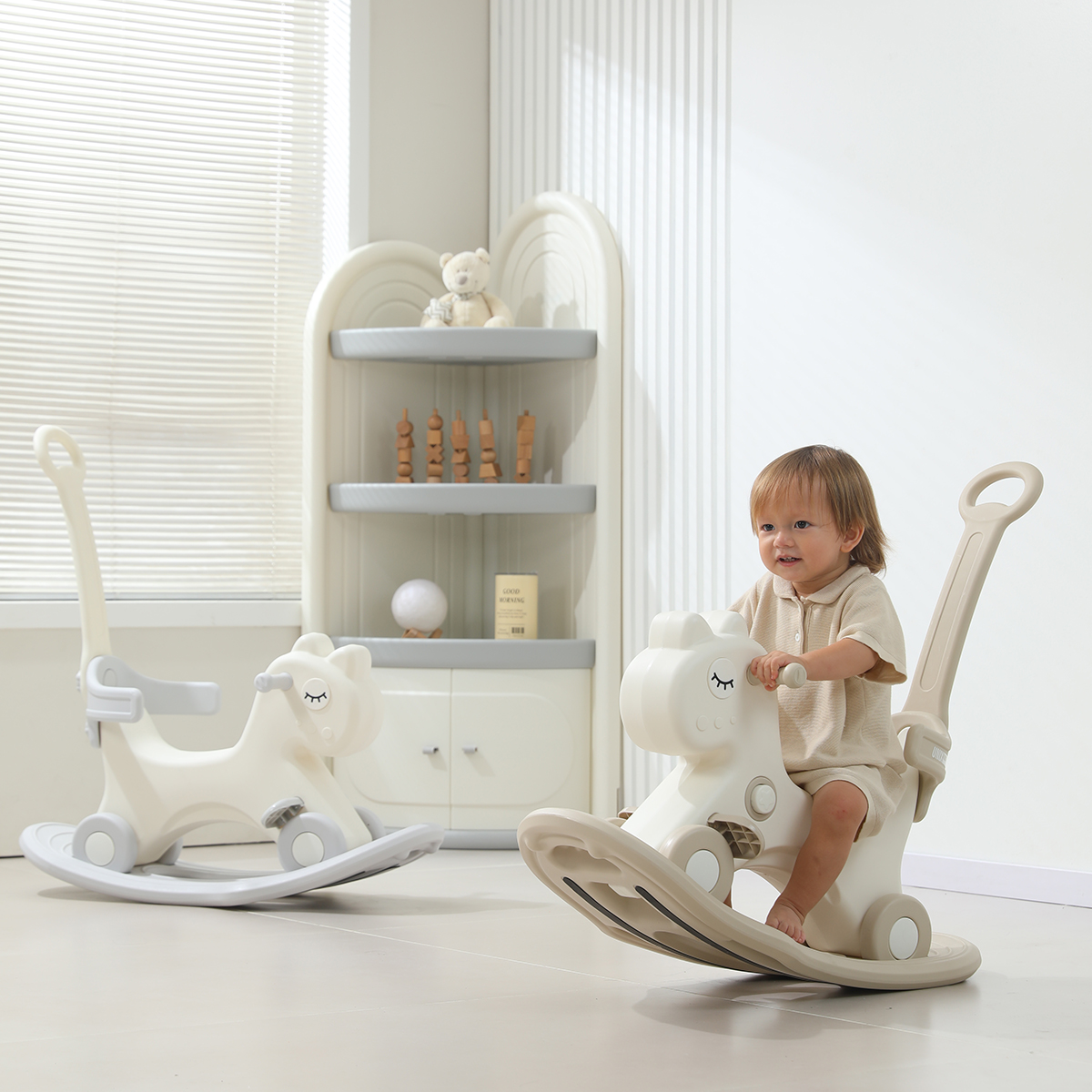 Качалка имеет стильный внешний вид, эргономичный дизайн, прочную конструкцию и способствует физическому развитию ребёнка. Отлично сочетается с другими детскими товарами марки Unix Kids.