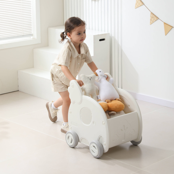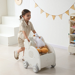 Легкая конструкция позволяет малышам легко управлять тележкой. Колеса каталки для игрушек обеспечивают плавный ход по любым поверхностям — будь то ламинат, ковровое покрытие или деревянный пол. Теперь дети смогут катать своих кукол и игрушки куда угодно!