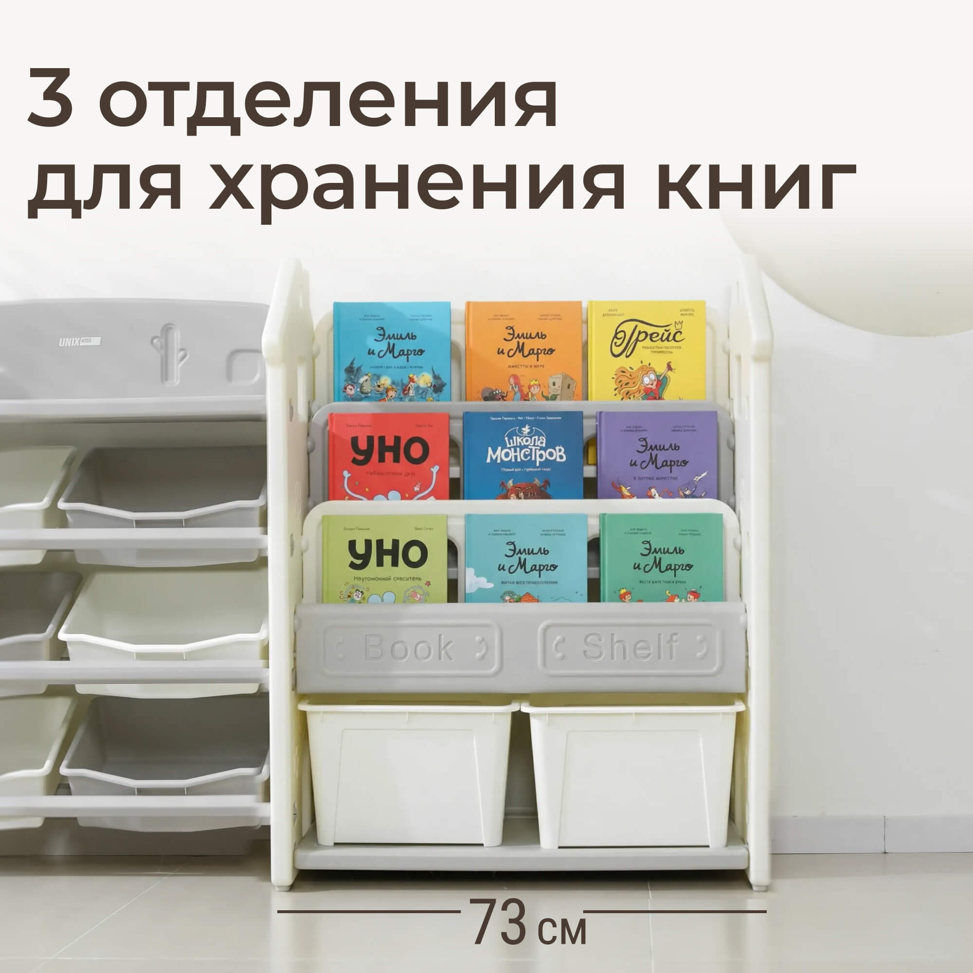 Стеллаж для игрушек и книг UNIX Kids Сastle / Замок серый