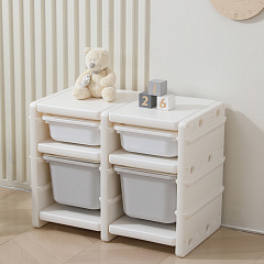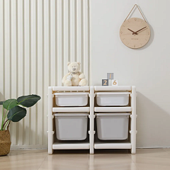 Наш пластиковый стеллаж для игрушек имеет светлую цветовую гамму, что позволяет ему идеально вписаться в любой интерьер и прекрасно подойти для детских комнат мальчиков и девочек. Этот стеллаж - прекрасное решение для хранения как мягких игрушек, так и более тяжелых предметов.