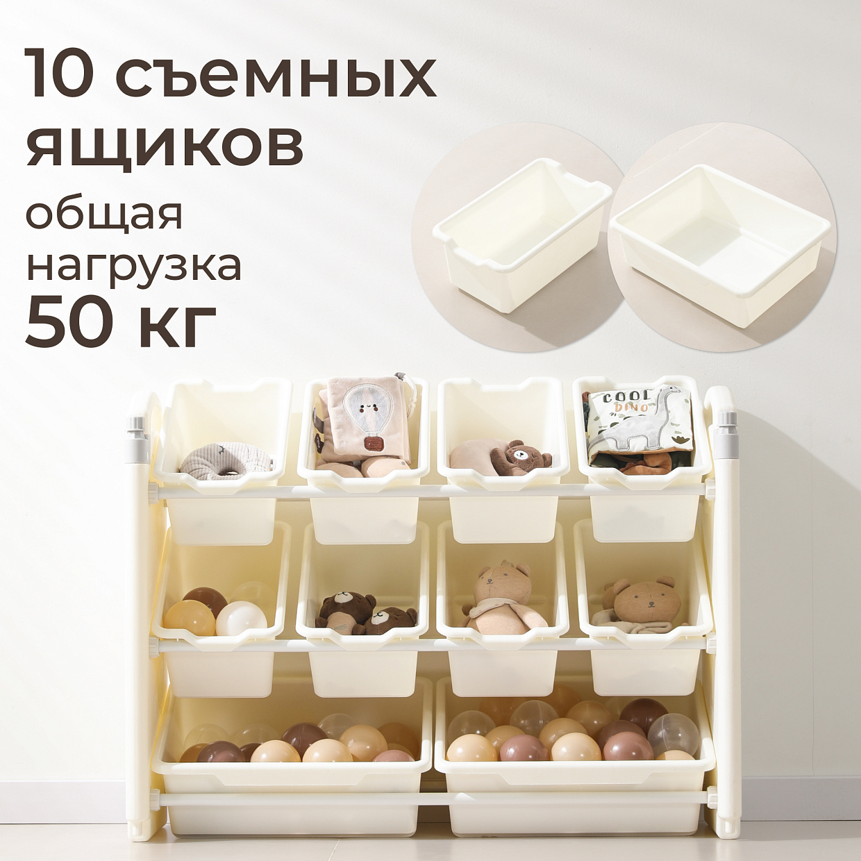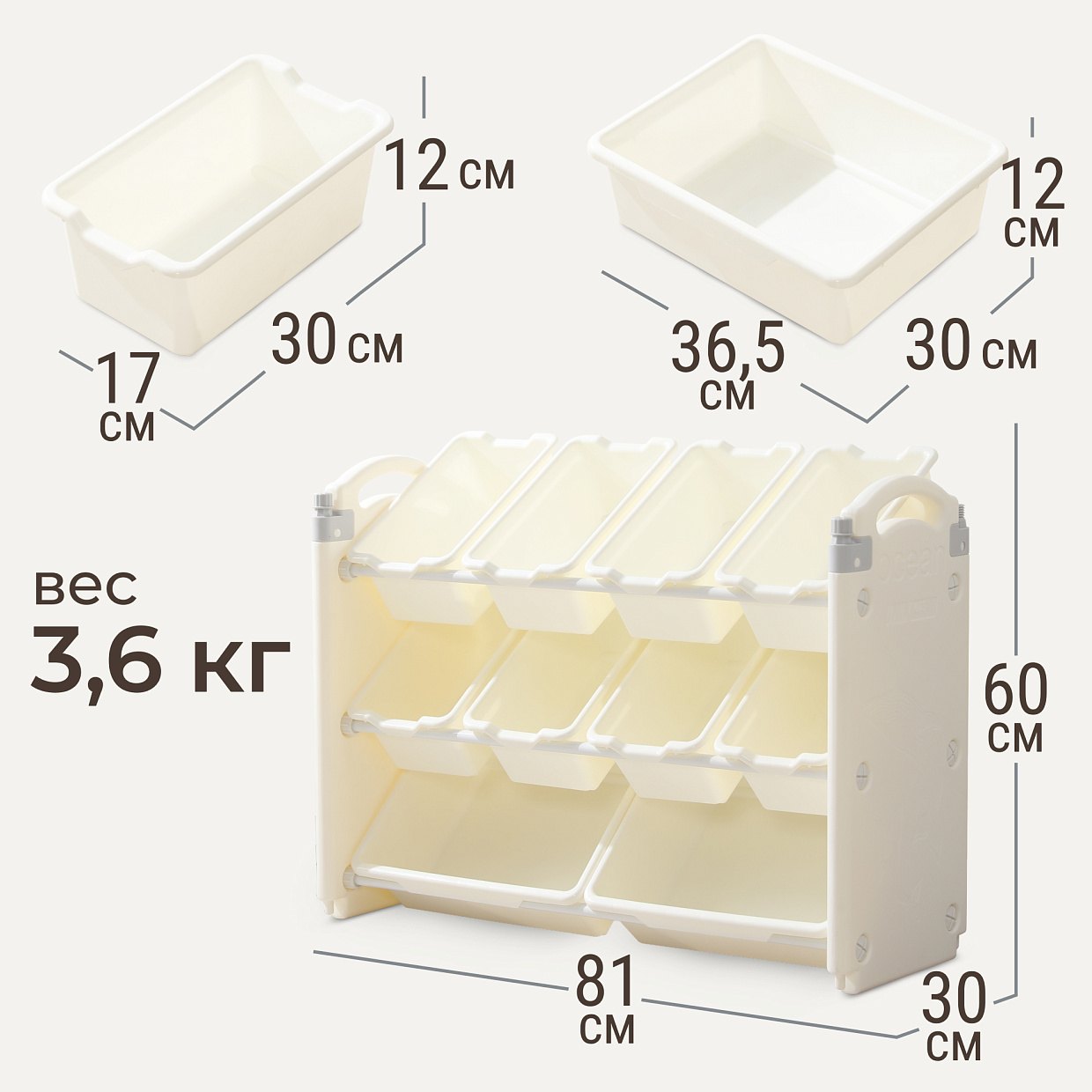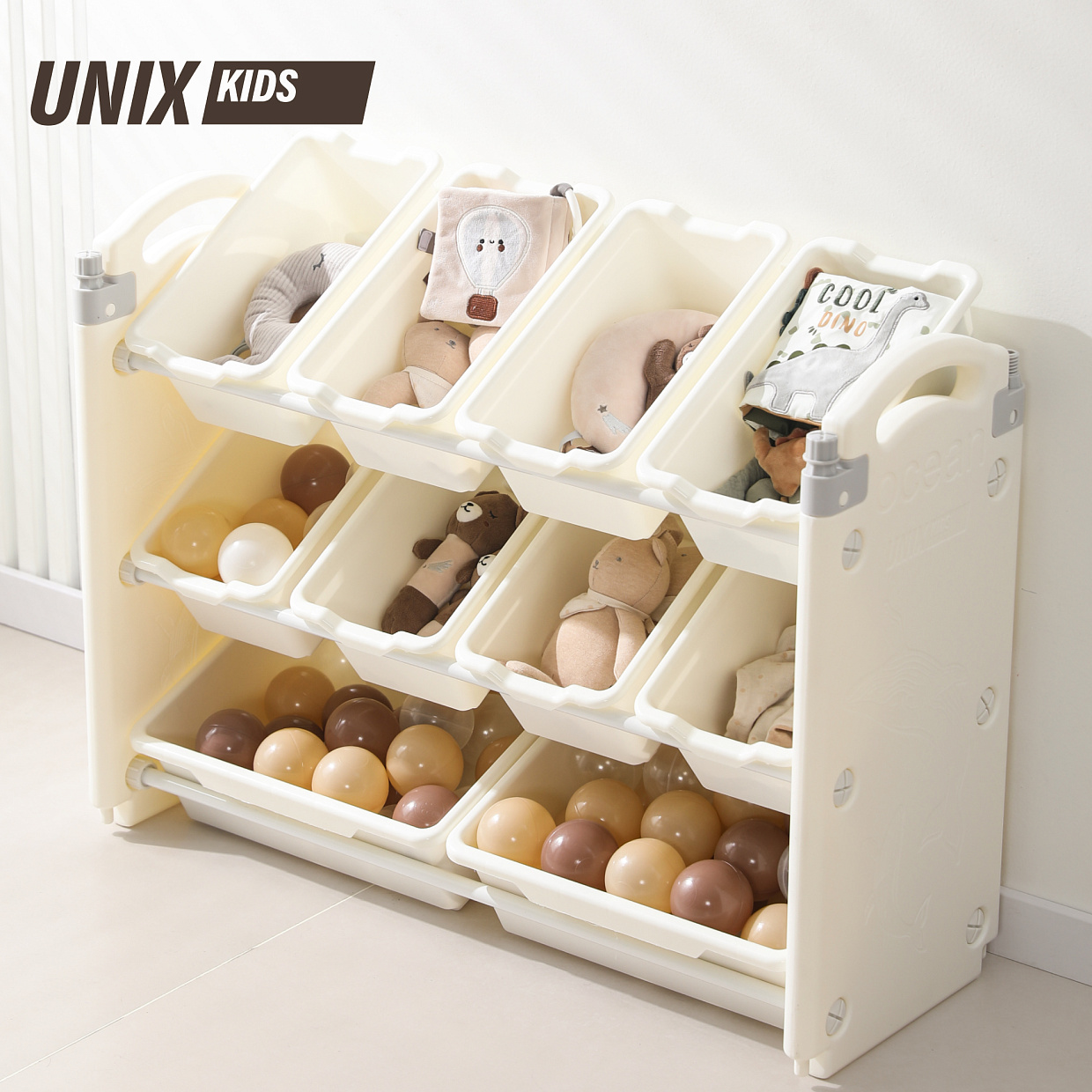 Стеллаж для игрушек UNIX Kids Ocean / Океан (10 ящиков) серый