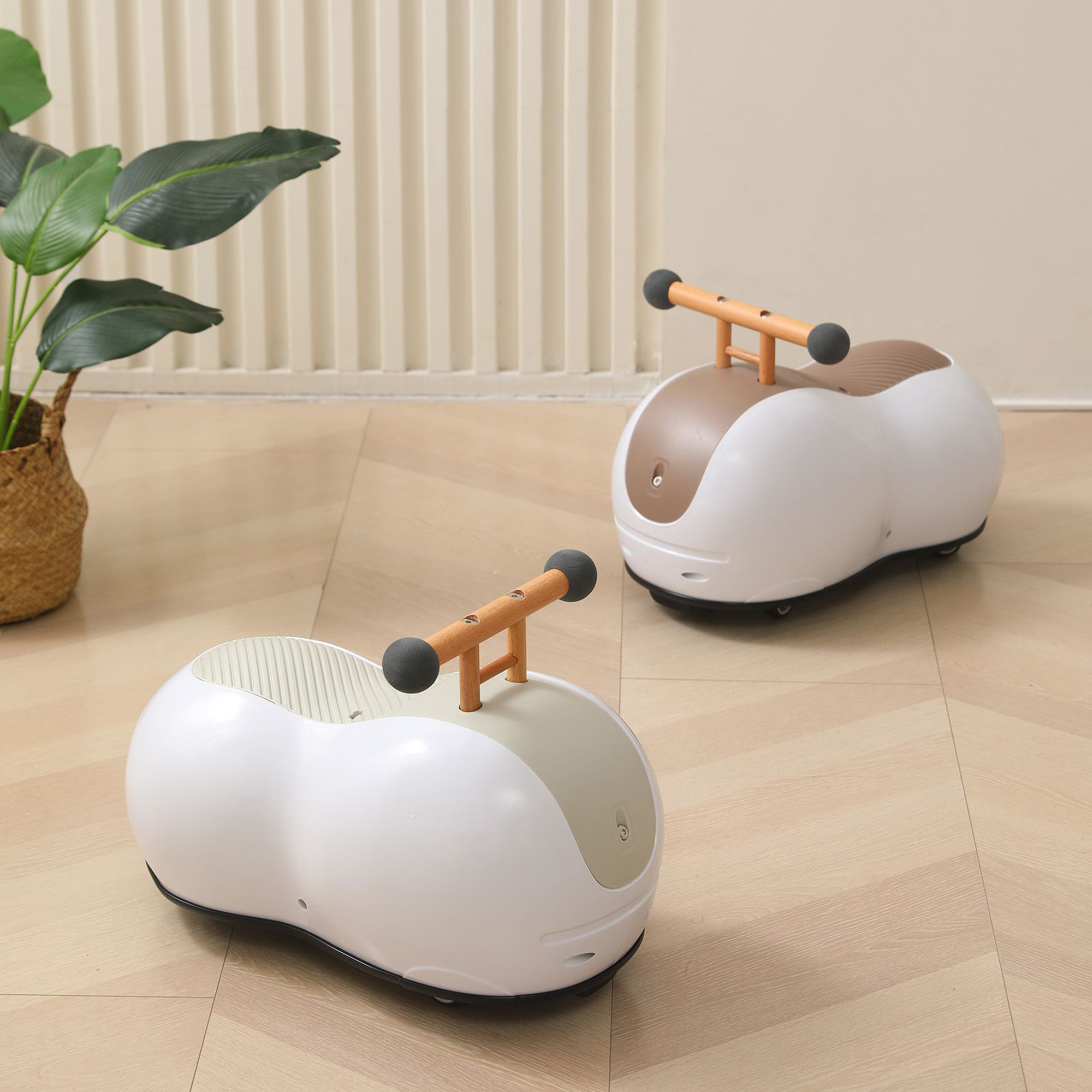 Толокар машина Peanut оснащена прочными колесами, которые обеспечивают плавное движение по поверхности и вращаются на 360 градусов. Благодаря этому, ваш ребенок может наслаждаться приключениями как в помещении, так и на свежем воздухе. Прорезиненные колеса не оставляют следов на полу.