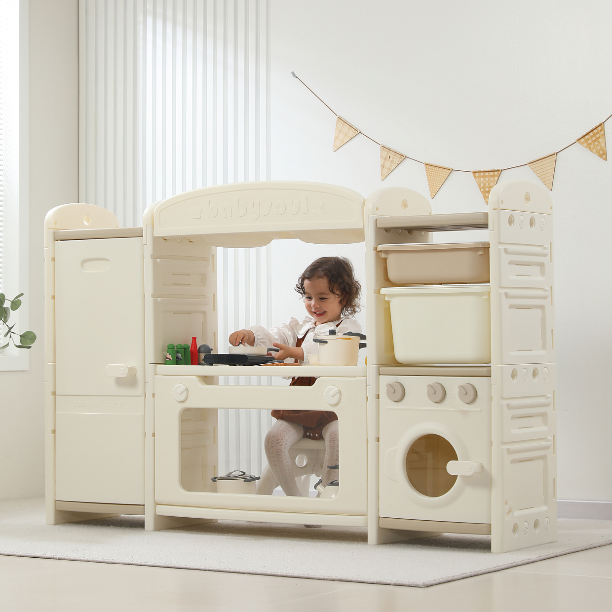 Игрушечная кухня 1+ изготовлена из пищевого пластика, который прошел строгие тесты на безопасность. Мы заботимся о здоровье и безопасности маленьких пользователей, поэтому каждая деталь продумана до мелочей – сглаженные углы без зазубрин, надежная конструкция. 48 элементов кухни легко очищаются от загрязнений, что делает их идеальными для игр. Просто протрите их влажной салфеткой — и они снова готовы к игре!
