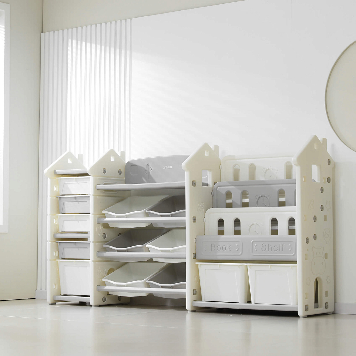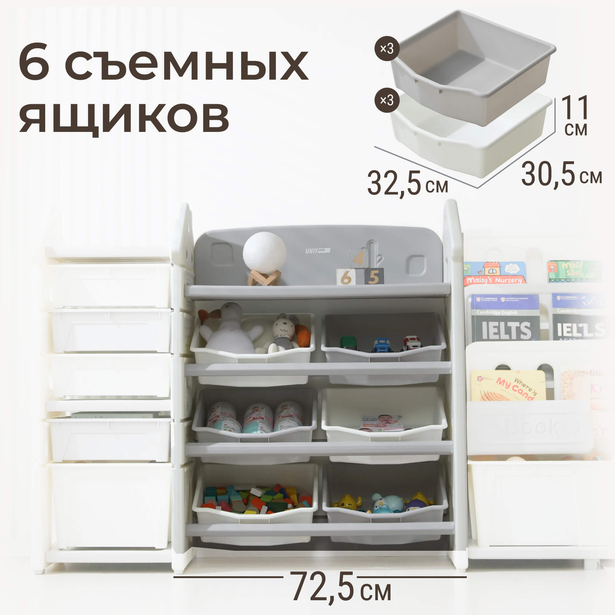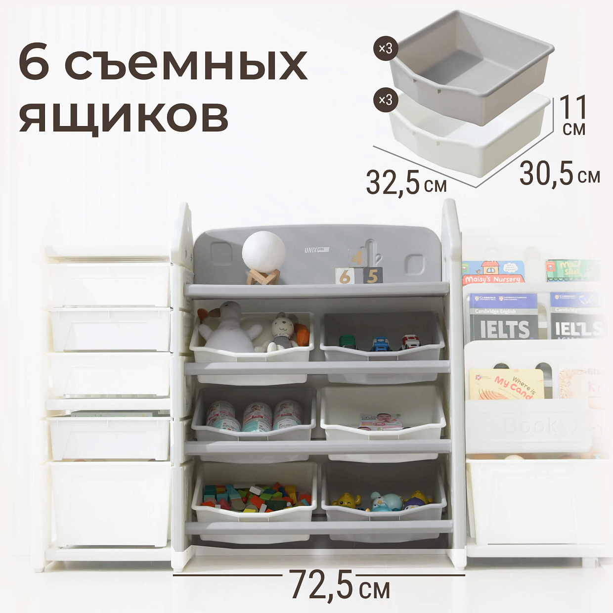 Стеллаж для игрушек и книг UNIX Kids Сastle / Замок серый