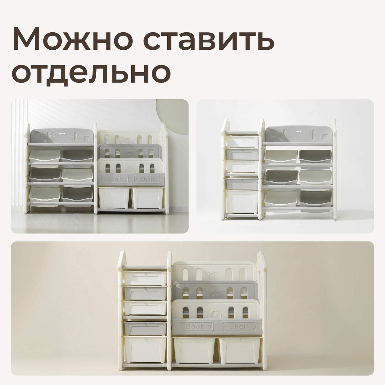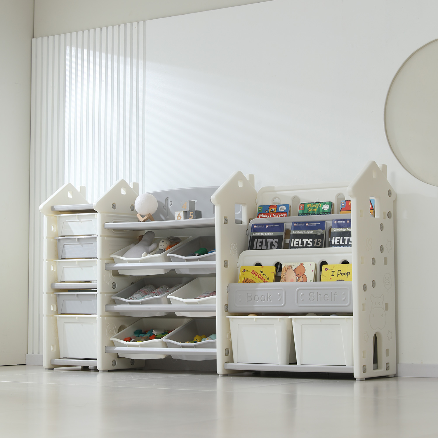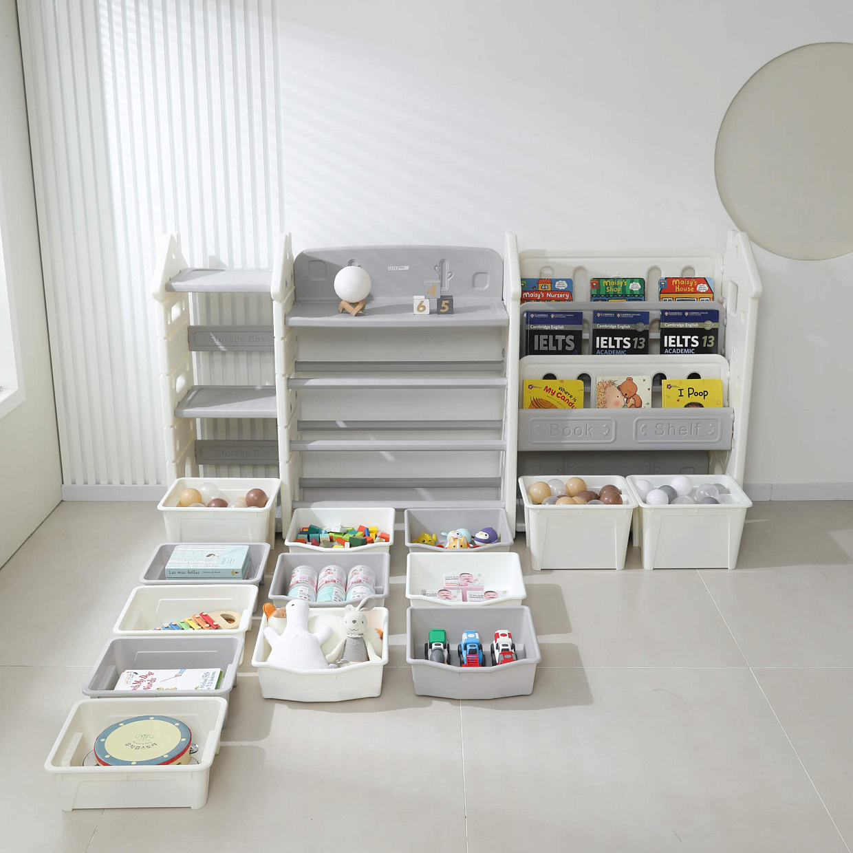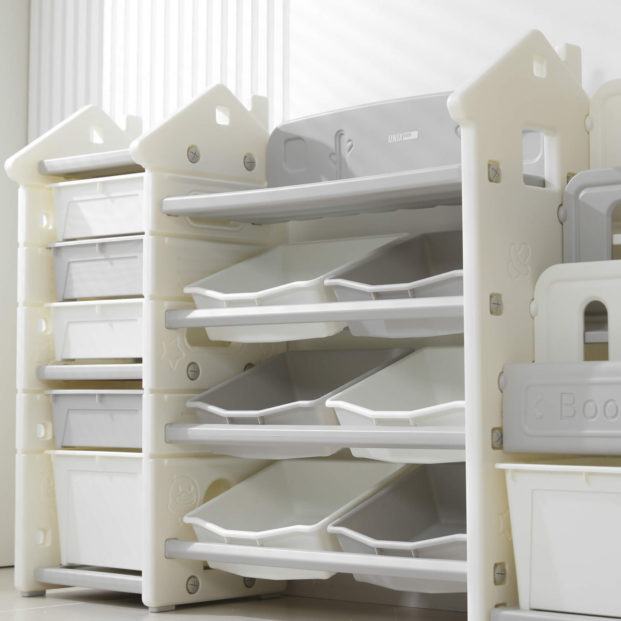 Стеллаж для игрушек и книг UNIX Kids Сastle / Замок серый