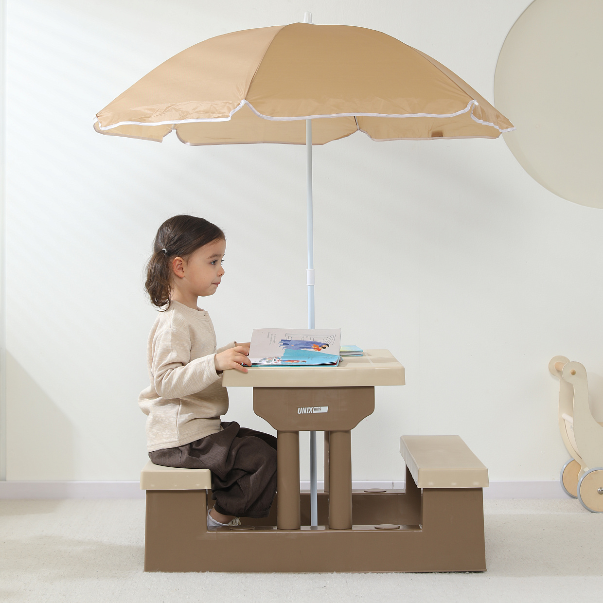 Стол садовый с зонтом UNIX Kids Garden / Сад бежевый