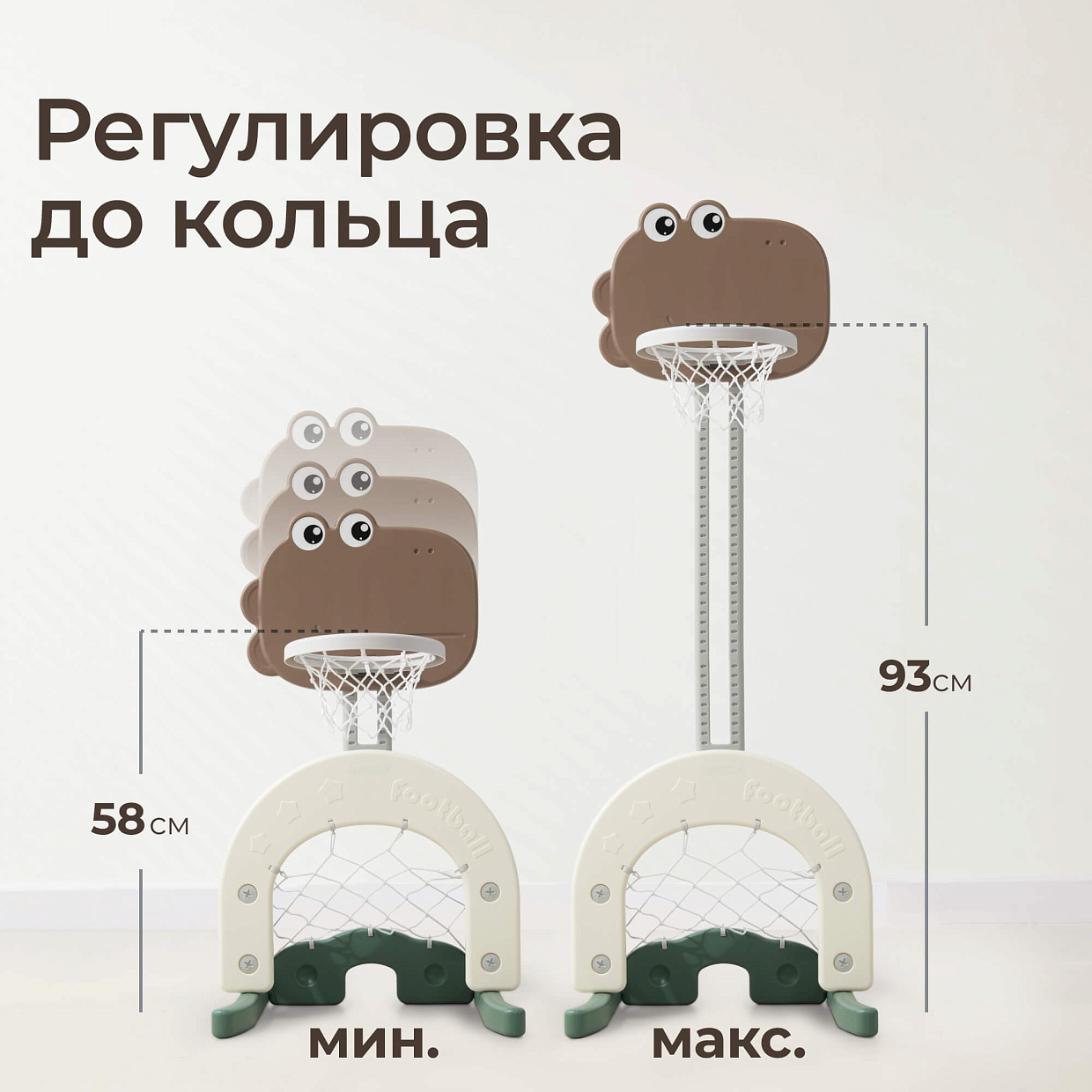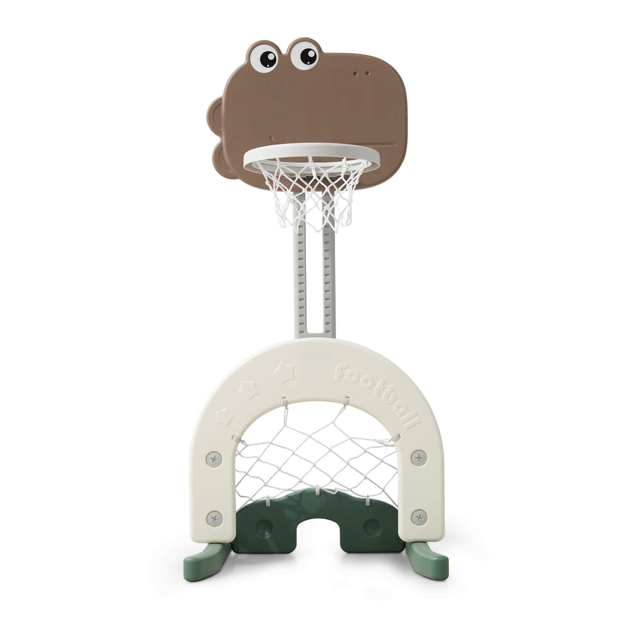 Детская баскетбольная стойка Unix Kids Dino – это целый стадион у вас дома: футбол, хоккей, баскетбол! Как и другие детские товары марки Unix Kids, комплекс изготовлен из пищевого пластика 4-го класса — согласно классификации ГОСТ, гипоаллергенного и абсолютно безвредного даже для самых маленьких пользователей. Также этот материал не боится UV-лучей, и его можно использовать на улице. Баскетбольная стойка имеет плавную регулировку по высоте в зависимости от роста ребенка.