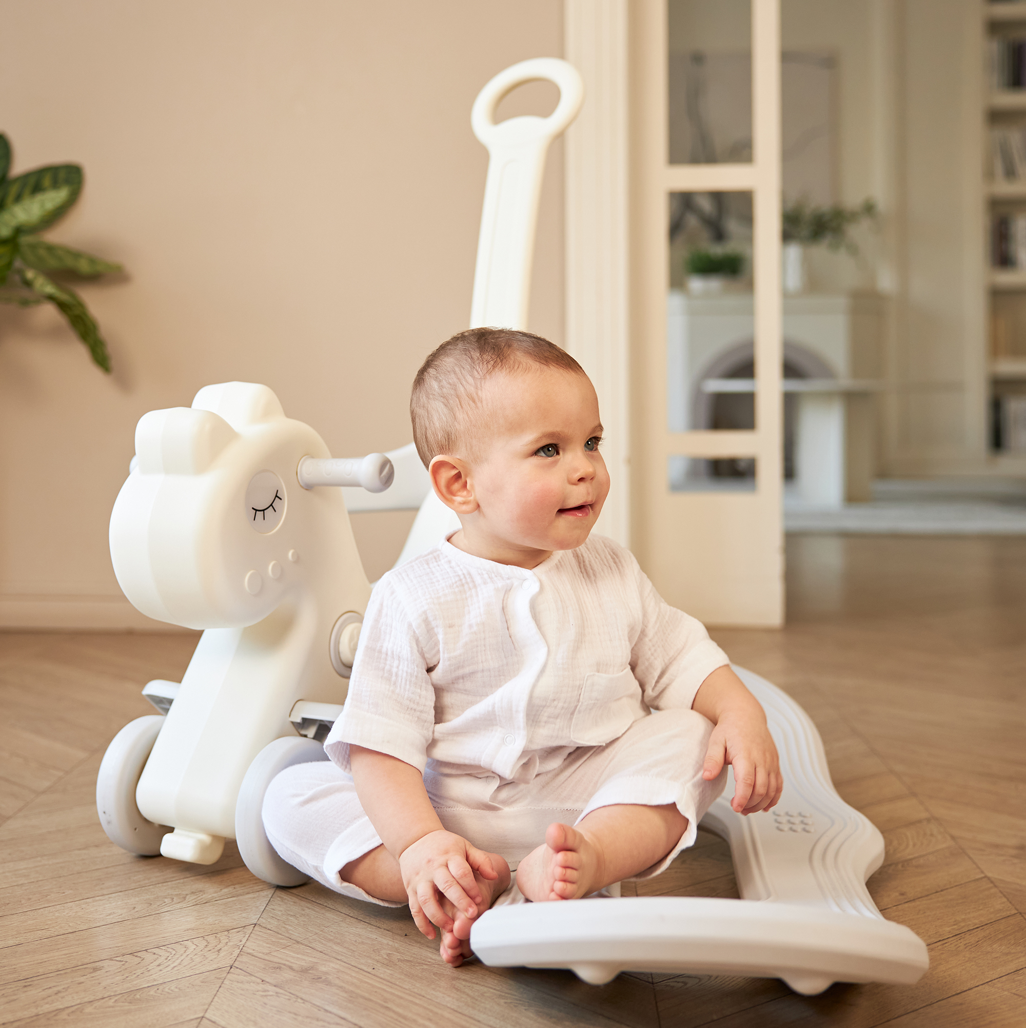 Широкое основание при качании обеспечивают максимальную безопасность для вашего малыша. Съемное основание позволяет легко превратить лошадку-качалку в лошадку-беговел. Фактически покупая одну игрушку, вы приобретаете две.