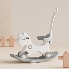 Лошадка-качалка-беговел UNIX Kids с ручкой серый