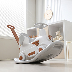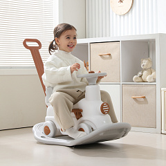 Сглаженные углы игрушки выполнены с большим вниманием, чтобы малыш мог комфортно и безопасно пользоваться игрушкой. Прочный корпус обеспечивает конструкции надежность и может выдержать ребенка с максимальным весом до 50 кг. Игрушка имеет небольшой собственный вес и компактные размеры 83х41х50/72 см, благодаря чему ее легко брать с собой в поездки.