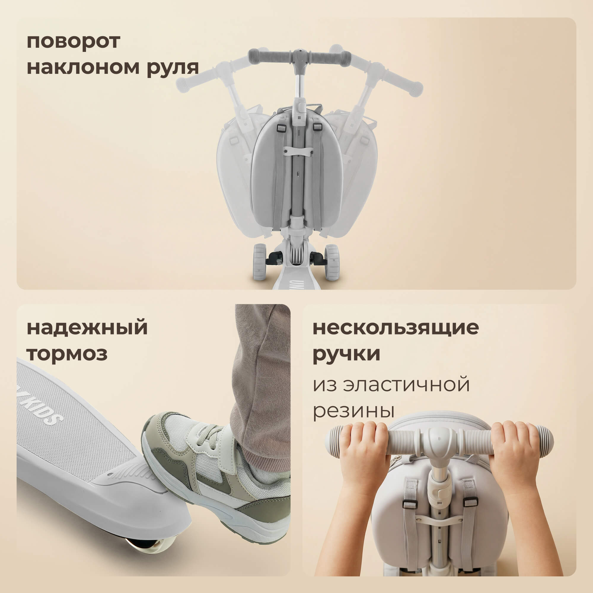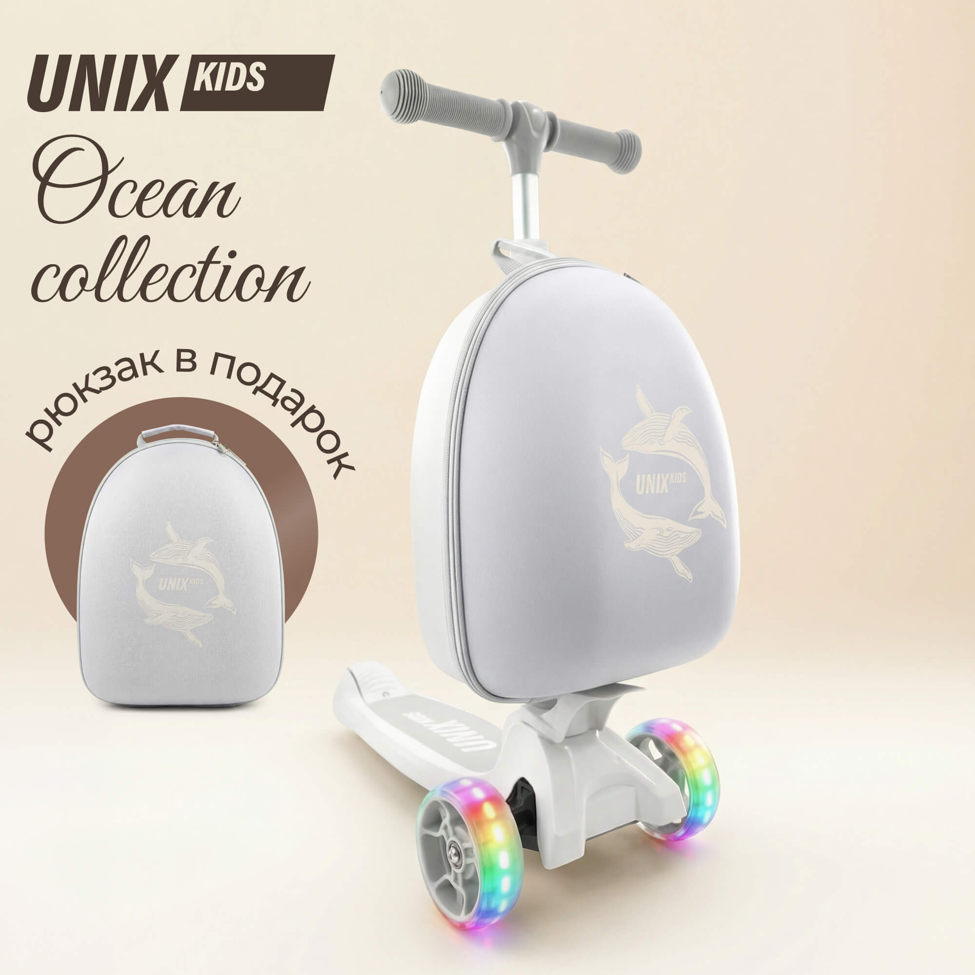 Самокат UNIX Kids Backpack Ocean / Океан с рюкзаком серый