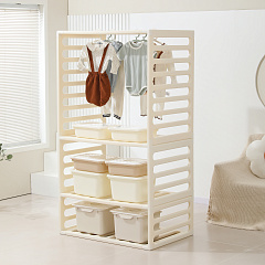 Одним из главных достоинств складного манежа является его способность преобразовываться в стеллаж. Вам больше не нужно беспокоиться о том, что делать с манежем, когда малыш немного подрастет. Вы сможете трансформировать его в напольный стеллаж и разместить на нем игрушки и книжки. Горизонтальные перекладины можно использовать для хранения вещей на вешалках.